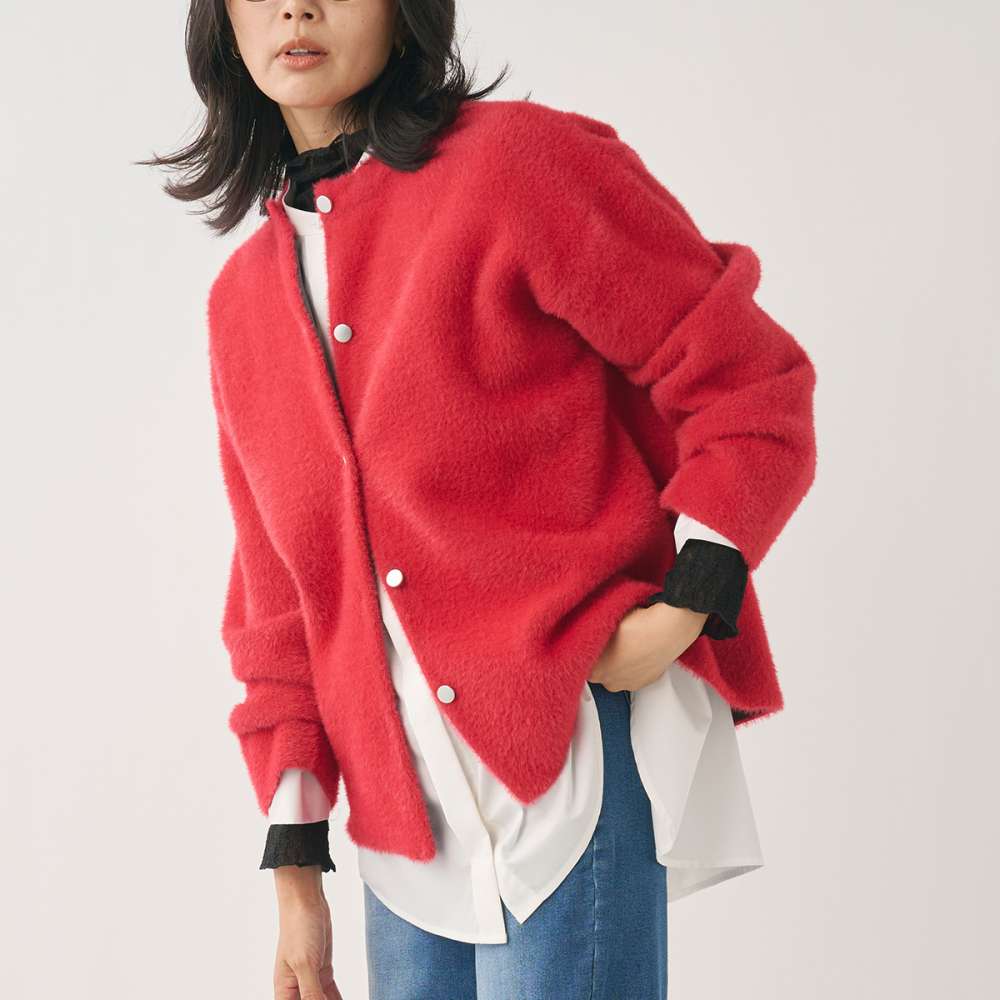 ダブルフェイスバイカラーニットカーデ ¥5,490 (税込 ¥6,039 ) 🟠POINT ・配色がコーデ映えするアウターとしても着られるカーディガ...