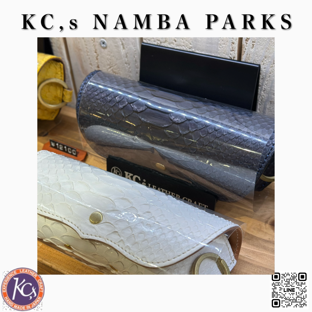 他では見たことない、オレンジパターンのパイソンを使ったメガネケース👓