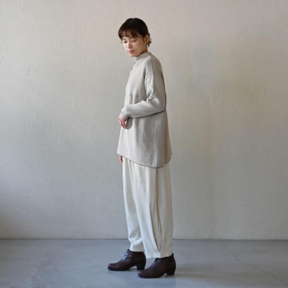 なめらかな生地でありながら、足首までのラインを美しく見せてくれる秘密はこのタックにあり!