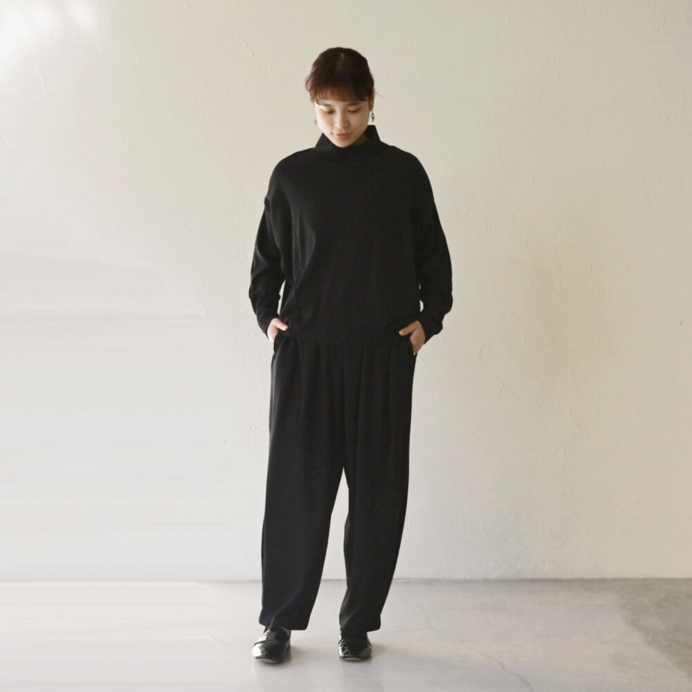 肌触りのいいオーガニックコットンで全身黒のコーデ!