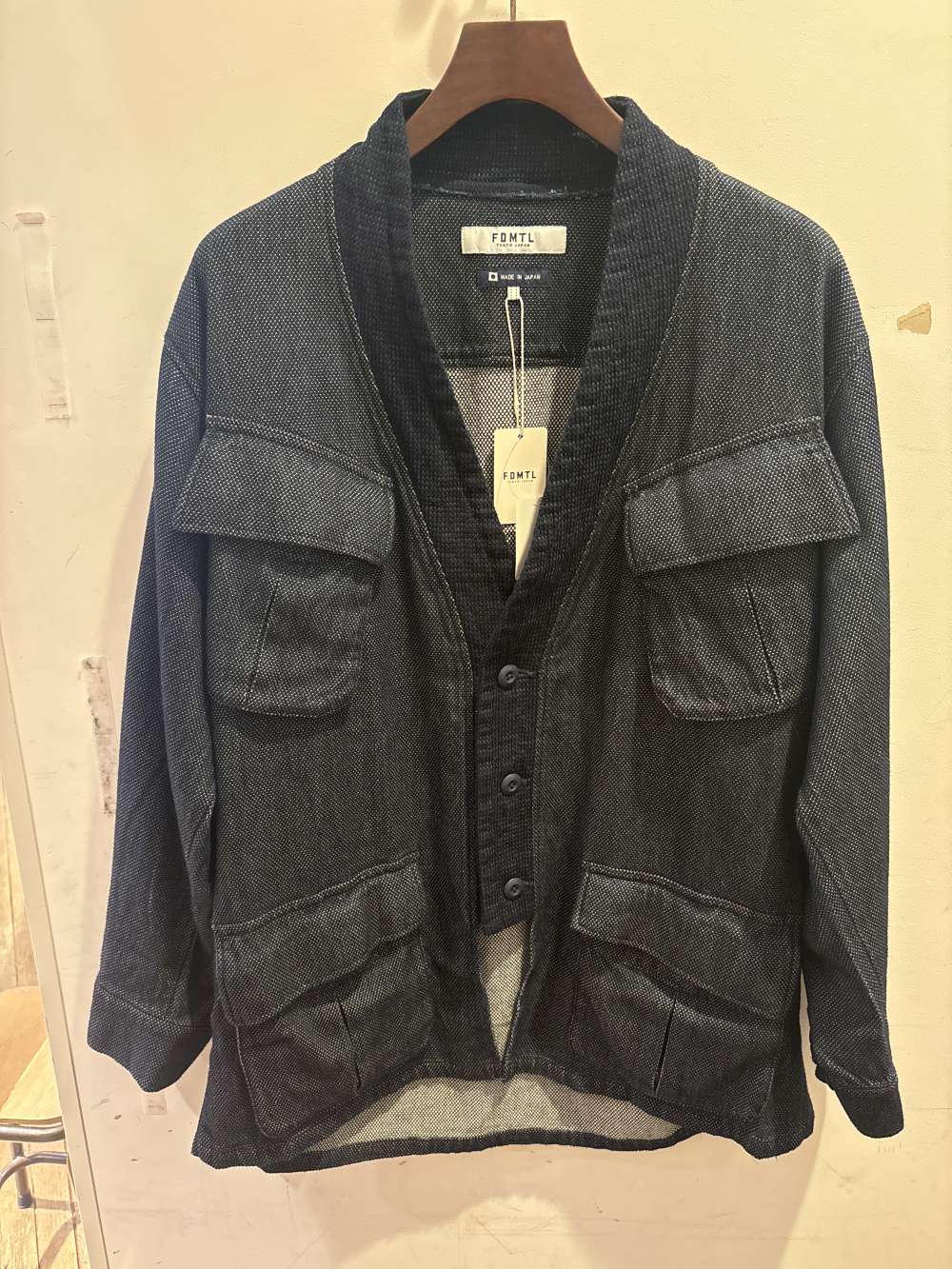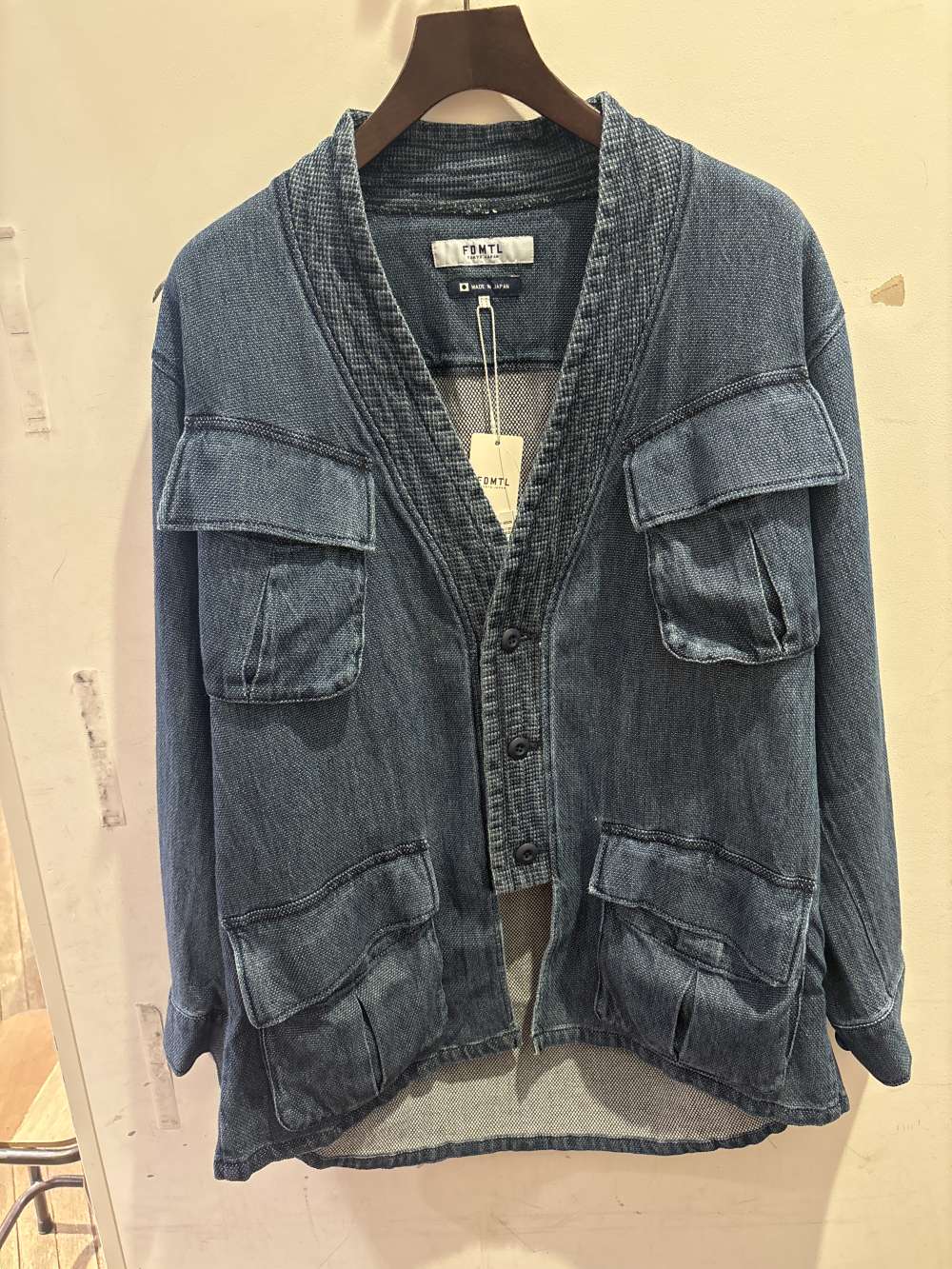 ファンダメンタルから少し変わった形のデニム羽織りが入荷しました。