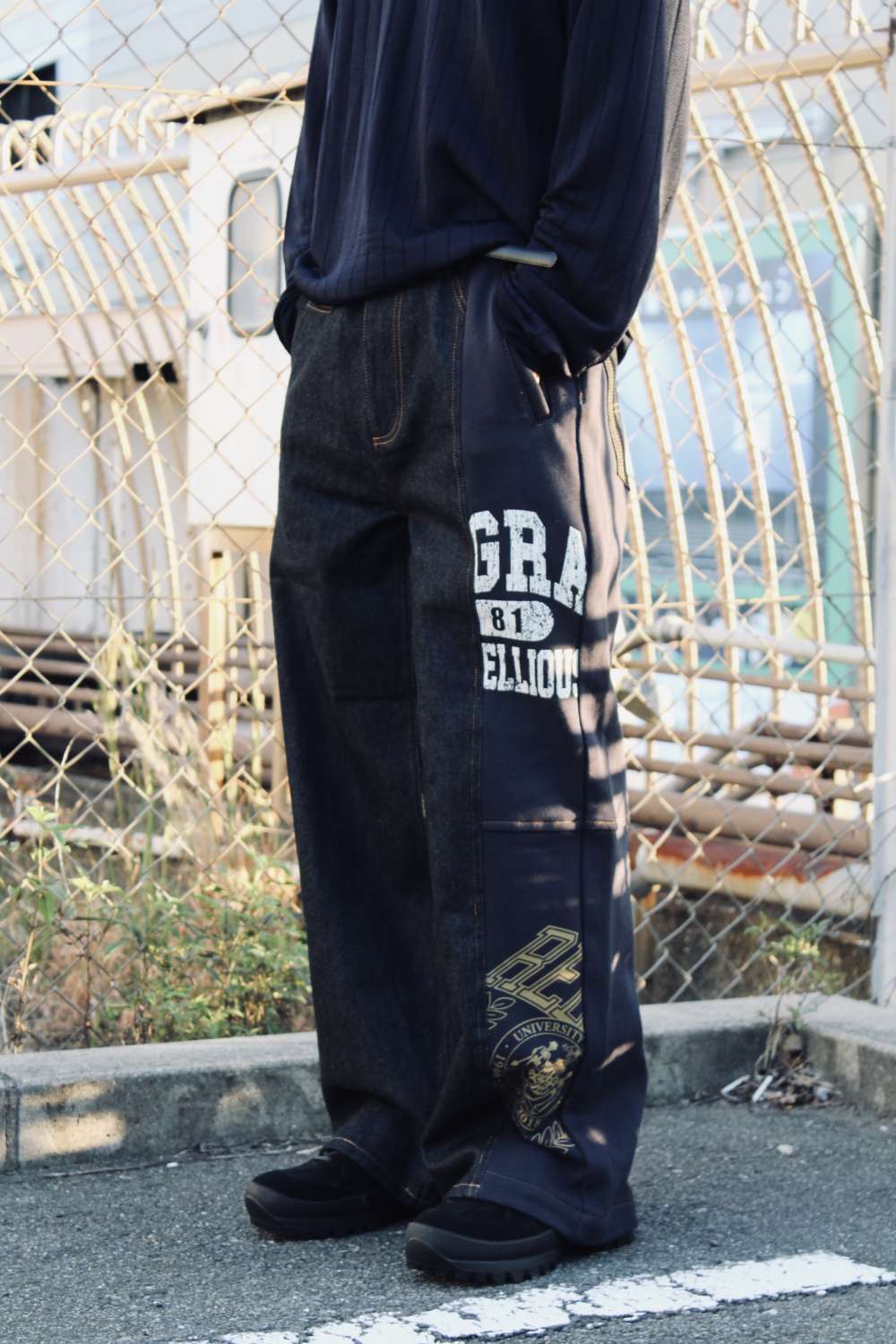 デニムとスウェットが合体したボトムになります!