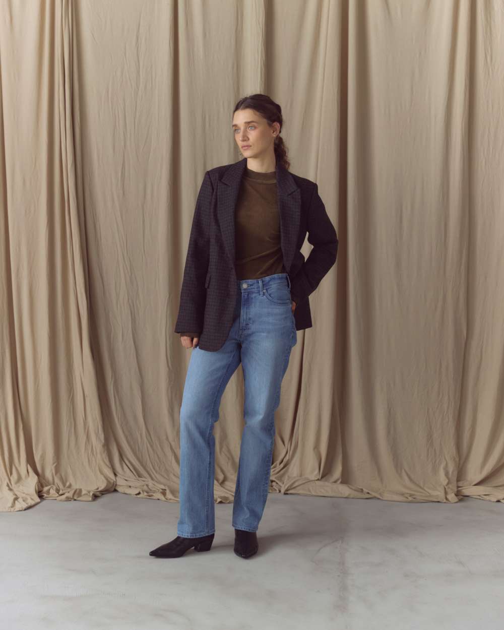 デニムらしいラフさがありつつも、女性らしいシルエットが叶うスリムストレートでますます装う楽しみが広がります。