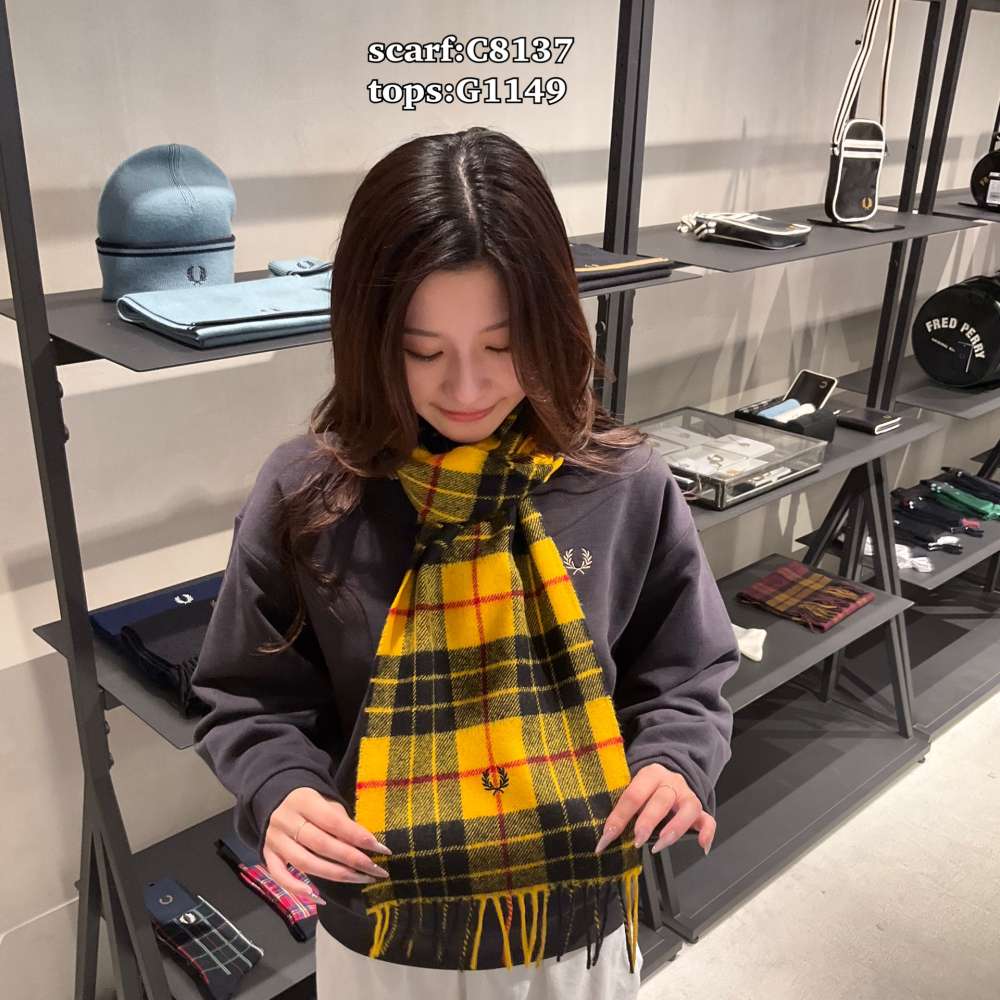フリンジとローレルリースの刺繍でデザインされており、Fred Perryオリジナルのタータンチェック柄は毎年人気です🎄✨