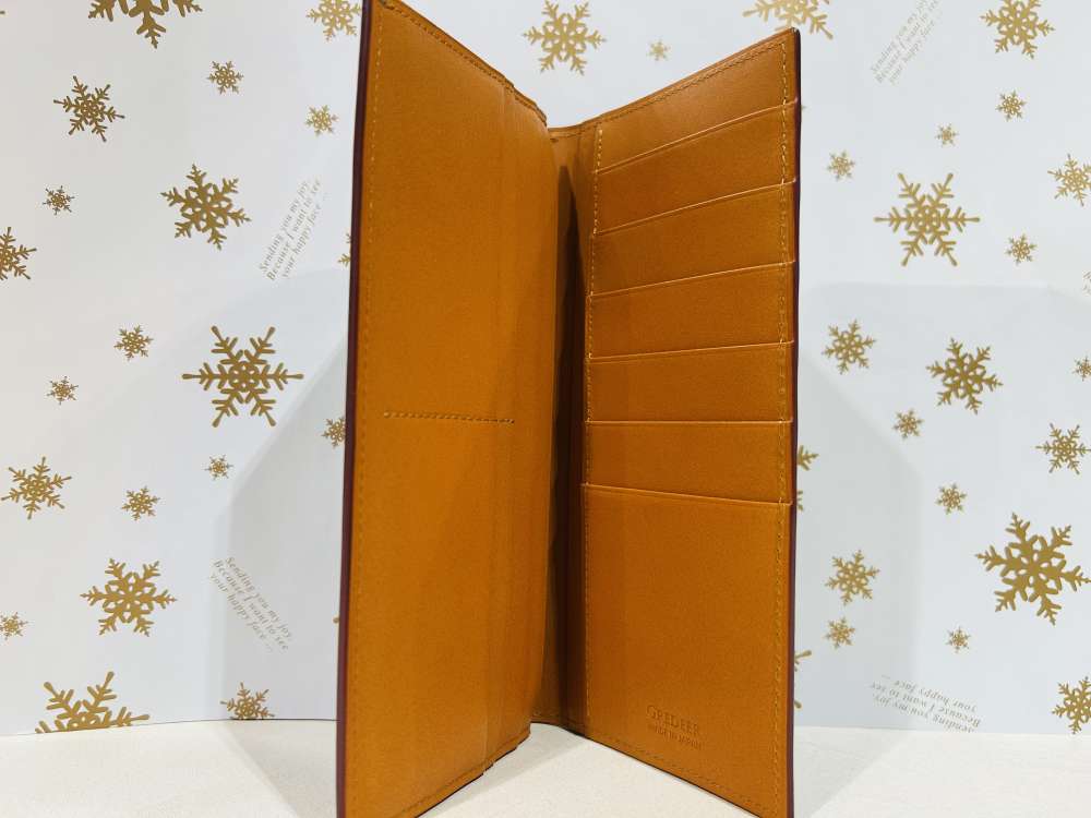 二層に重ねた塗料を、部分的に落とすことによって得られる濃淡が特徴の、非常に美しい仕上がりのお財布。