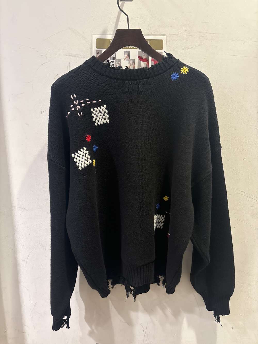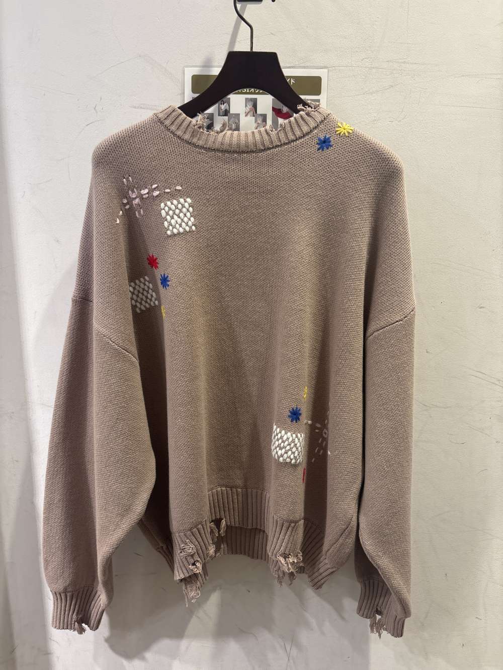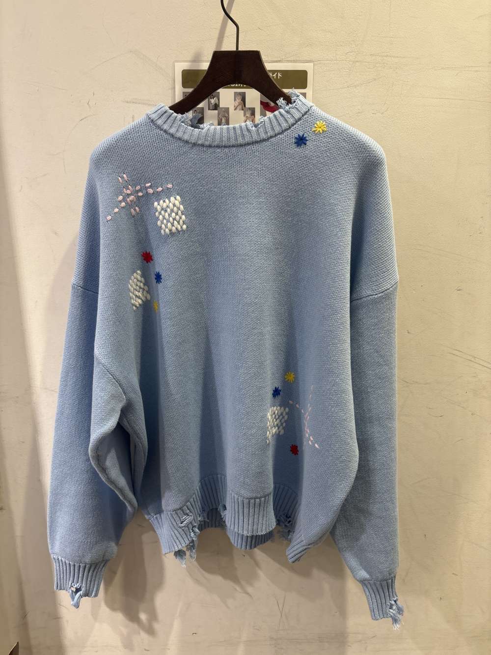 ステッチはRED,BLLUE,YELLOWなどの色糸も使っており、着るだけでテンションの上がるニットです。