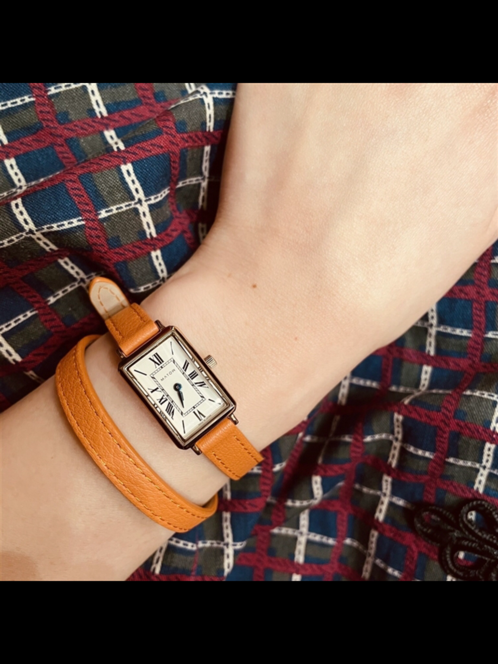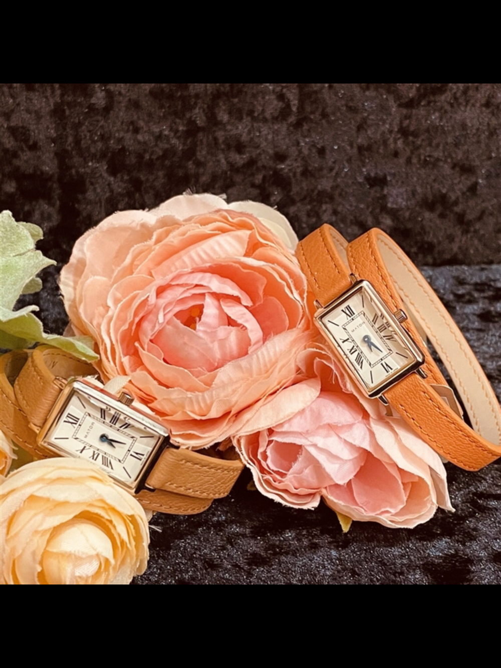 長めのレザーストラップが細くしなやかに2重に重なり、月が描く静かな流れのような優雅な印象に。