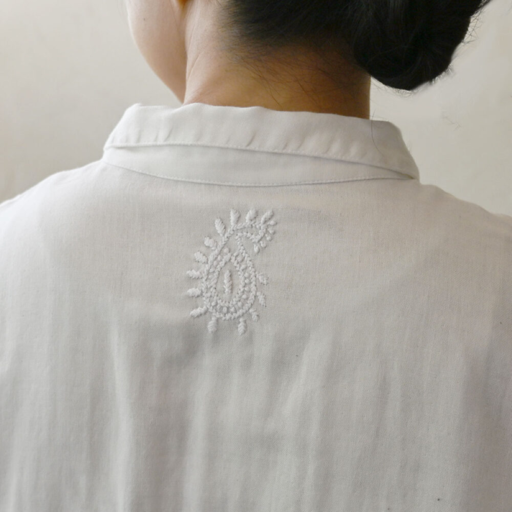 背守りには、インドで親しみのあるニームウッドの葉をモチーフに。