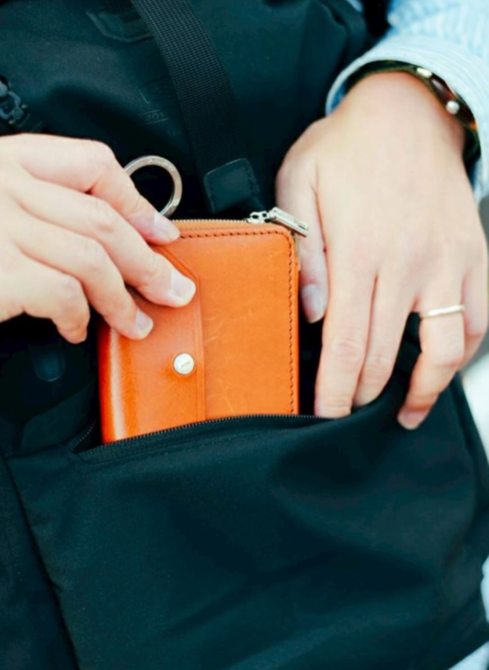 背面からメイン収納にアクセス出来るサイドジップを施しています!