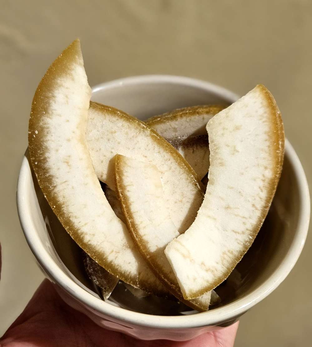 ポメロのピール部分をスライスカットして、ドライフルーツに加工した珍しい商品。