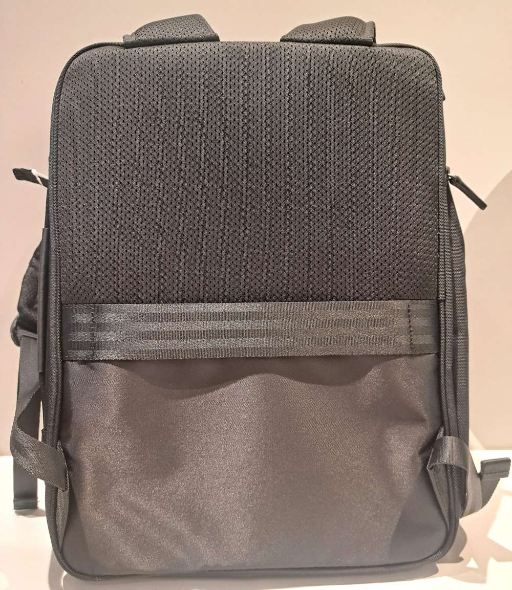 背面は上半分にメッシュ、下半分は本体生地を採用。