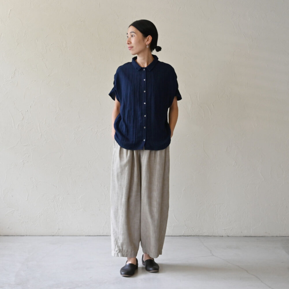 ゆったりとしたシルエットで、らくらく過ごせるコクーン型のパンツ。