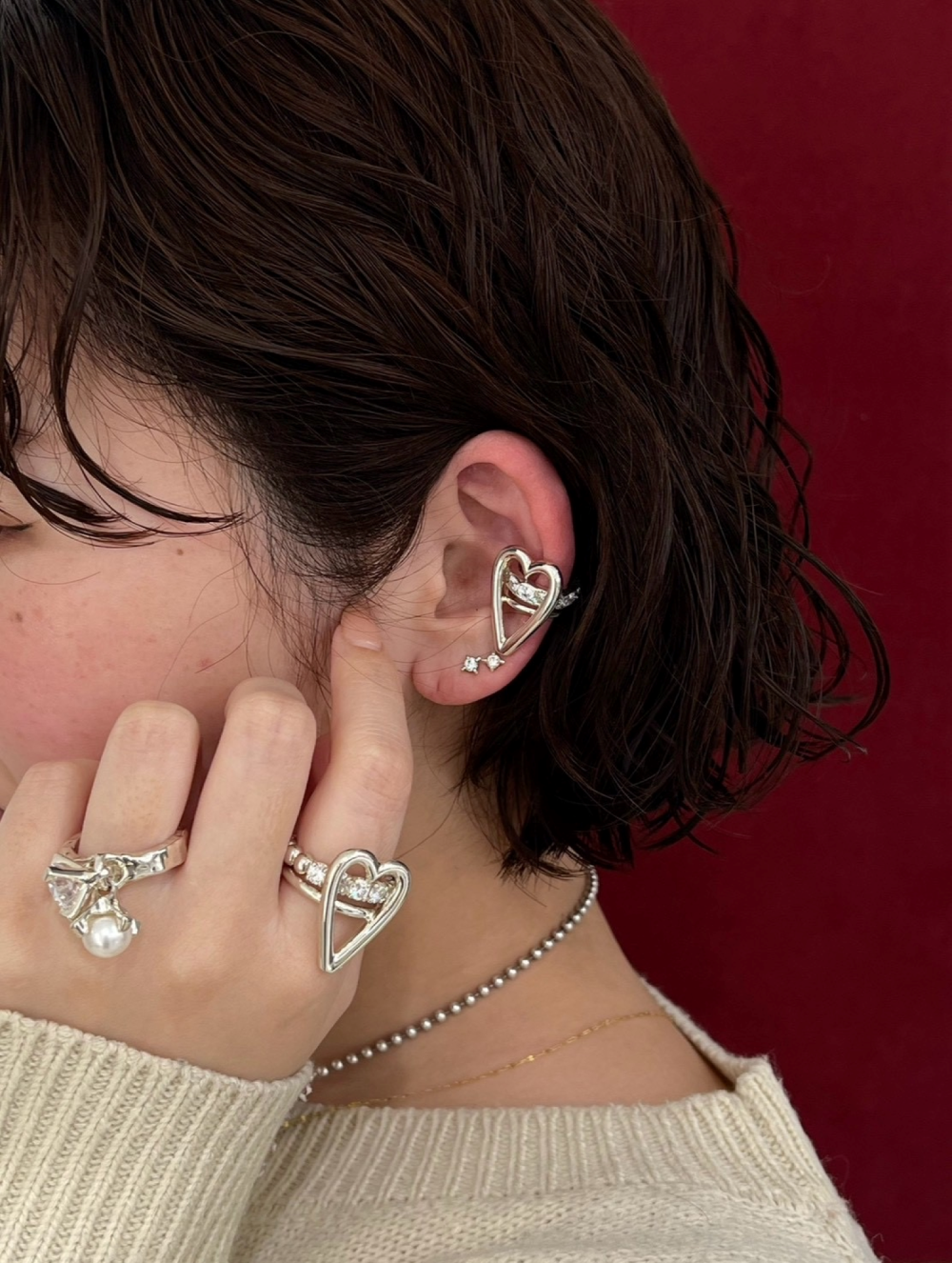 甘くなりすぎないハートジュエリーは