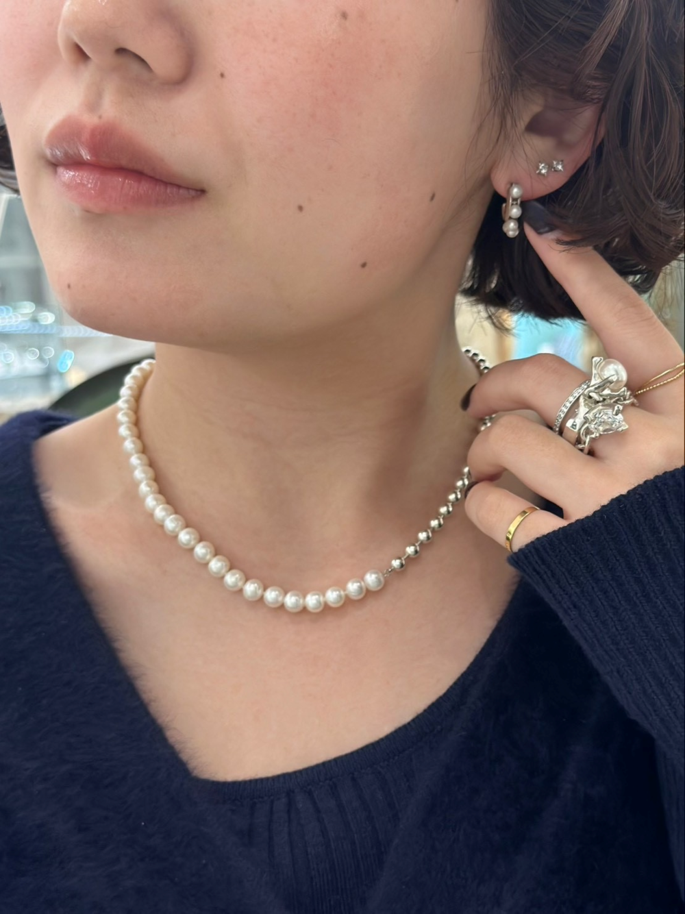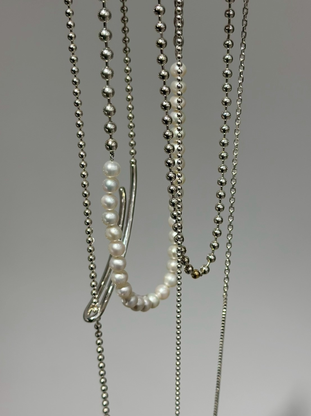 程よい存在感のパールとシルバーのコントラストが楽しいネックレス
