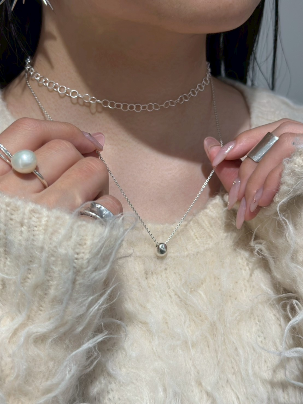 春の装いにプラスするシルバーネックレス