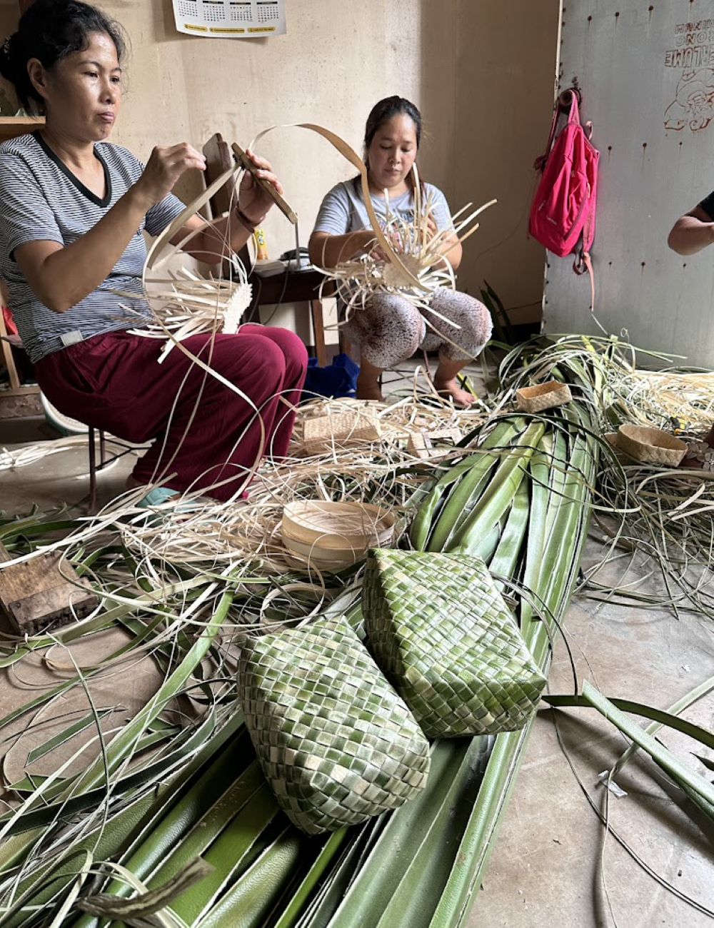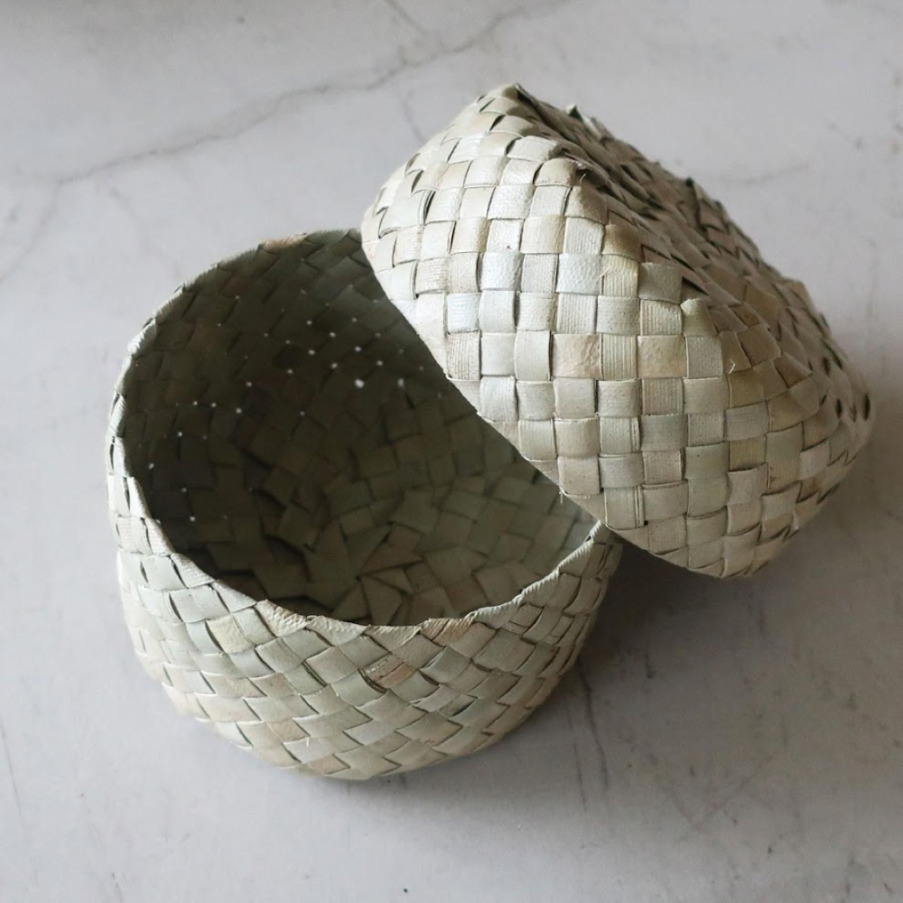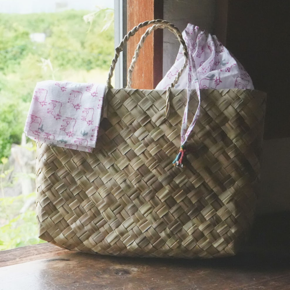 「バリュウリーフ」で編みあげられたカゴ。