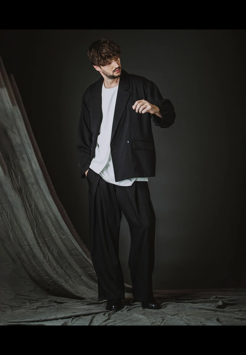 バックスリットダブルブレストJKTとセットアップ着用可能