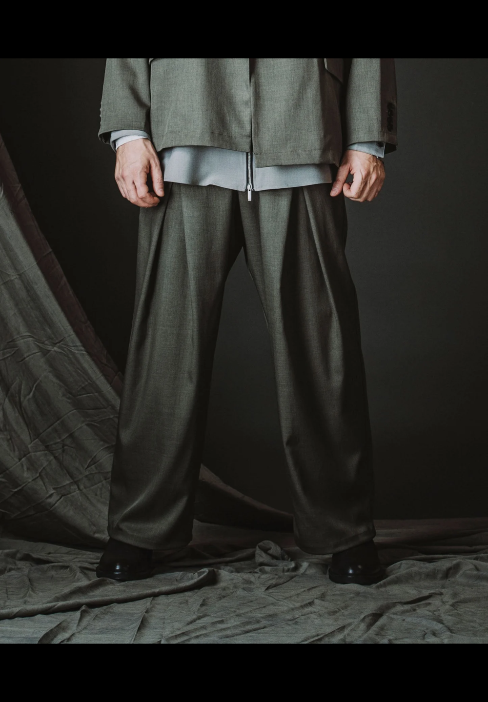 交差する2本のタックが立体的なフォルムを構築するイージーワイドトラウザーズ