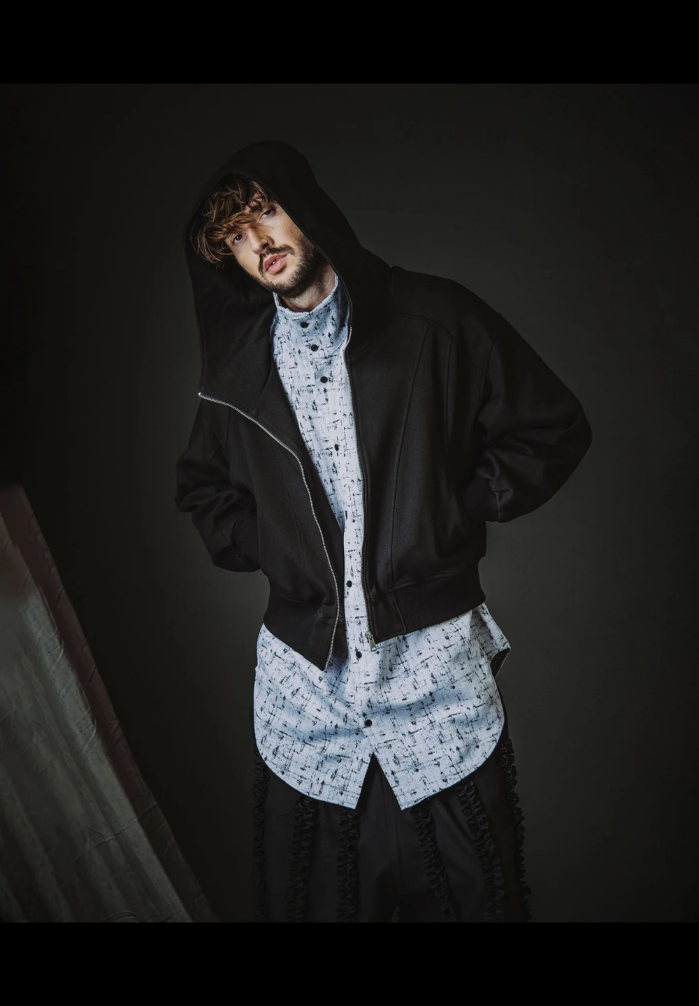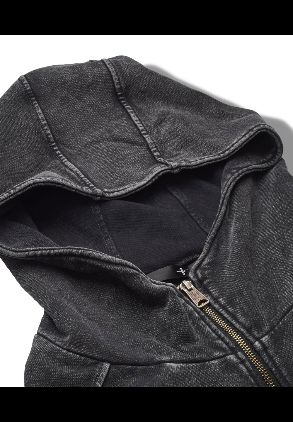 汎用性の高いZIPパーカーに個性的な切替デザインを施した1枚。