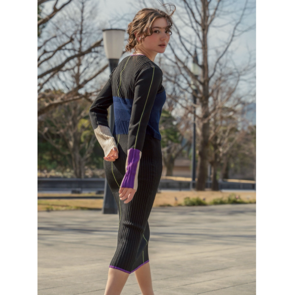 配色ラインデザインが縦のラインを強調し、スタイルアップ効果も抜群。