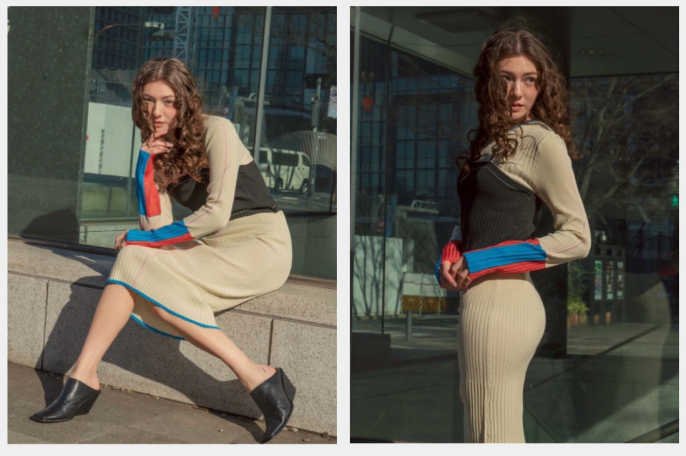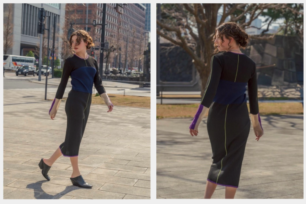 身体に程よくフィットするIラインシルエットで、女性らしさとモード感を両立。