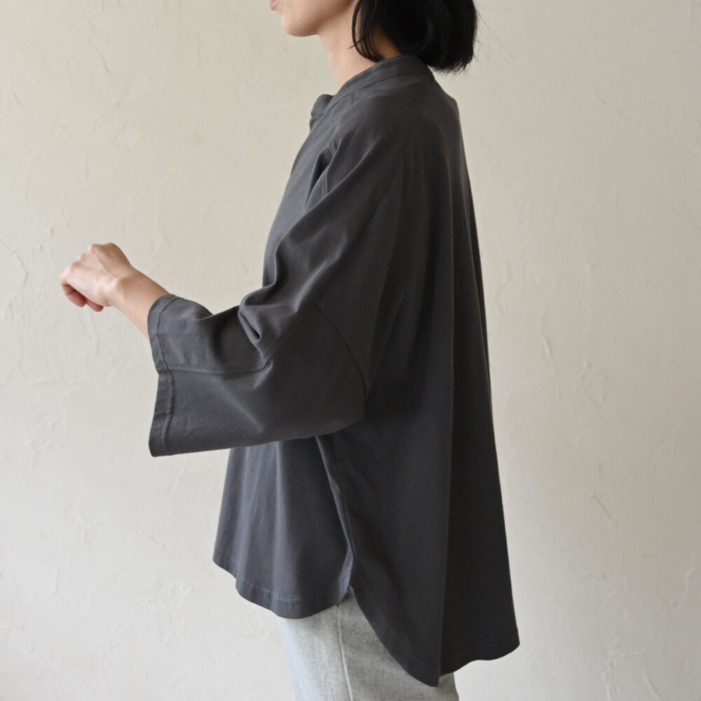 裾は前後差があることでワイドパンツやスカートにも合わせやすいです。