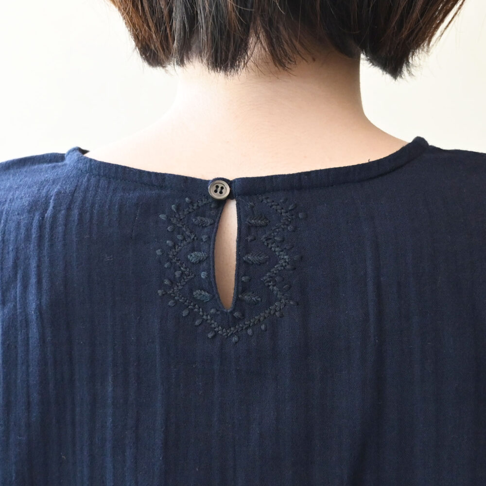 後ろの涙開きには幾何学模様のような手刺繍があります。