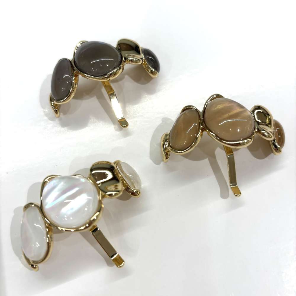 ゴールドカラーのメタルフレームに、ぷっくりとした楕円形のストーンを組み合わせたヘアカフ!
