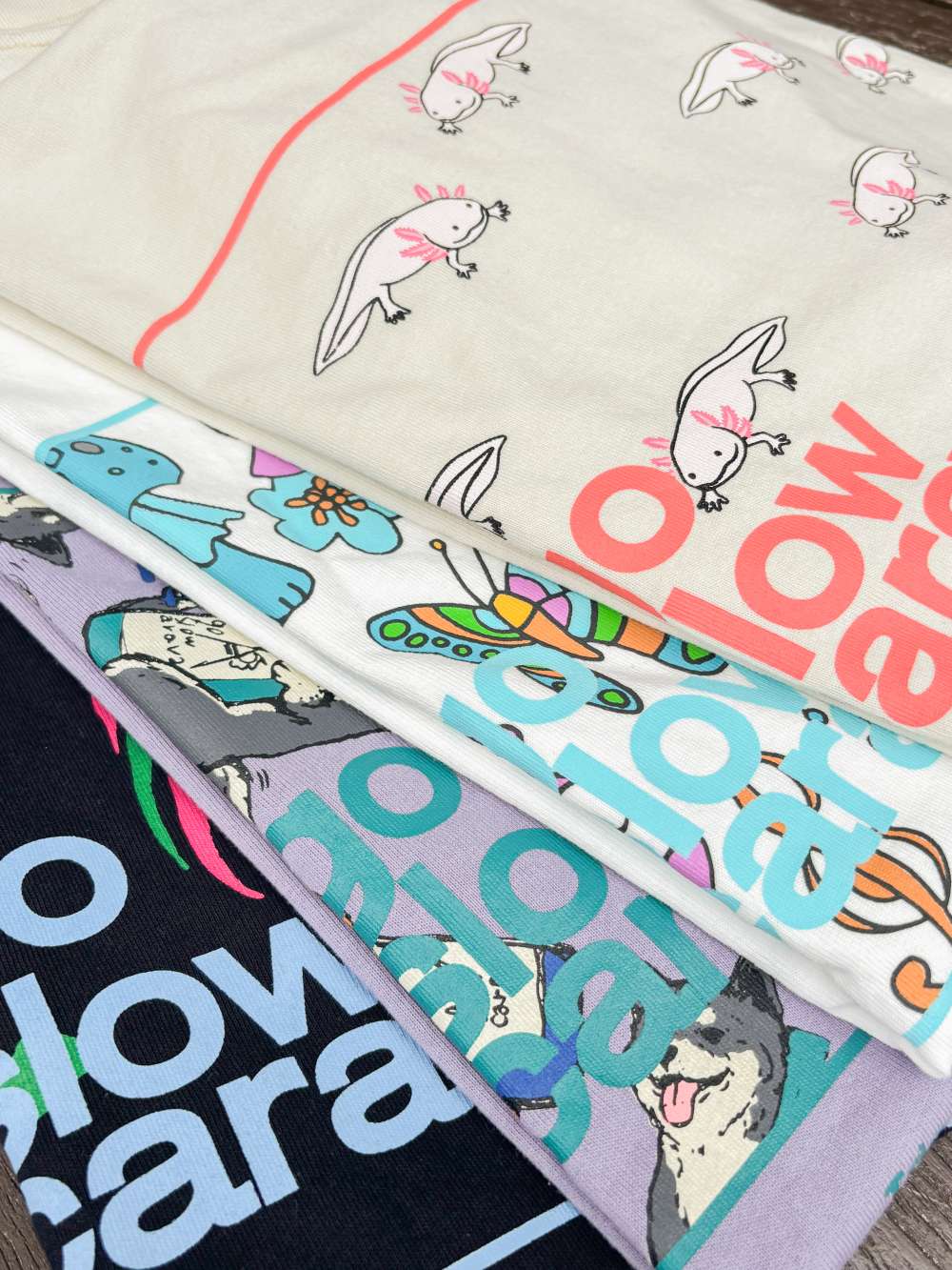バックプリントにgo slow caravanの人気オリジナル柄をスクエア状に切り取り、コンセプトを添えた定番シリーズです。