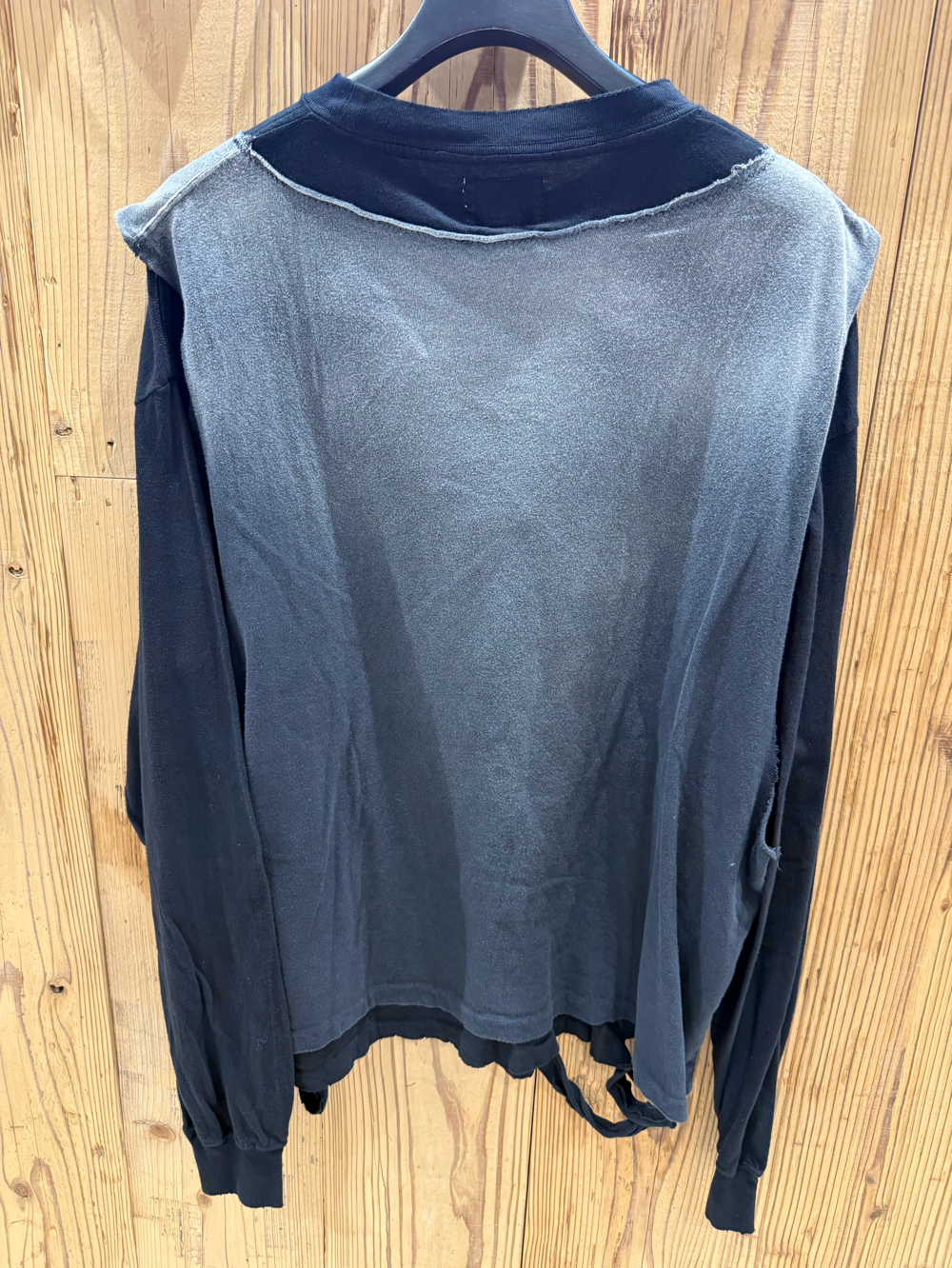 ・エイジング加工や断ち切りを施したノースリーブをドッキングし、異なる質感のコントラストが特徴のデザインに。