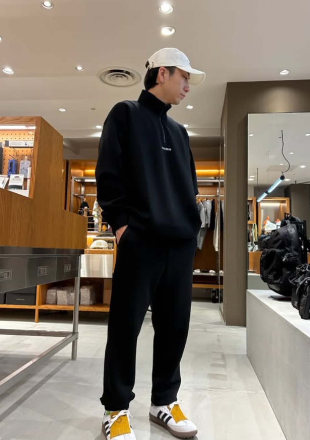 すっきり見える程良いオーバーサイズシルエットを追求し、身幅/肩幅にゆとりをもたせつつプレーを考えた長すぎない着丈と袖丈がポイント✨
