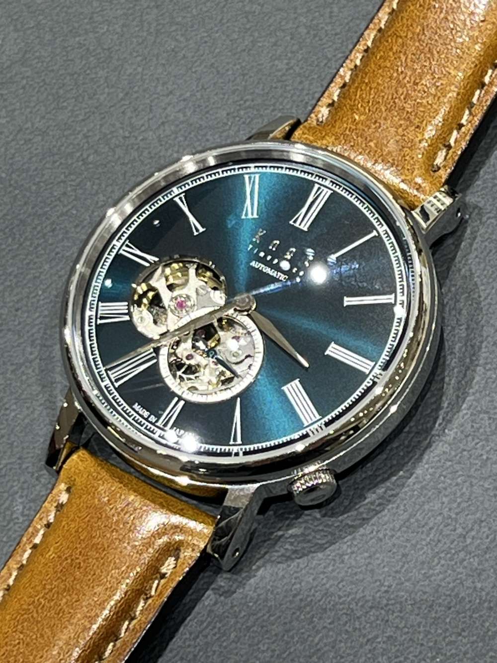 機械式ムーブメントの心臓分であるテンプの動きを楽しめるオープンハート。