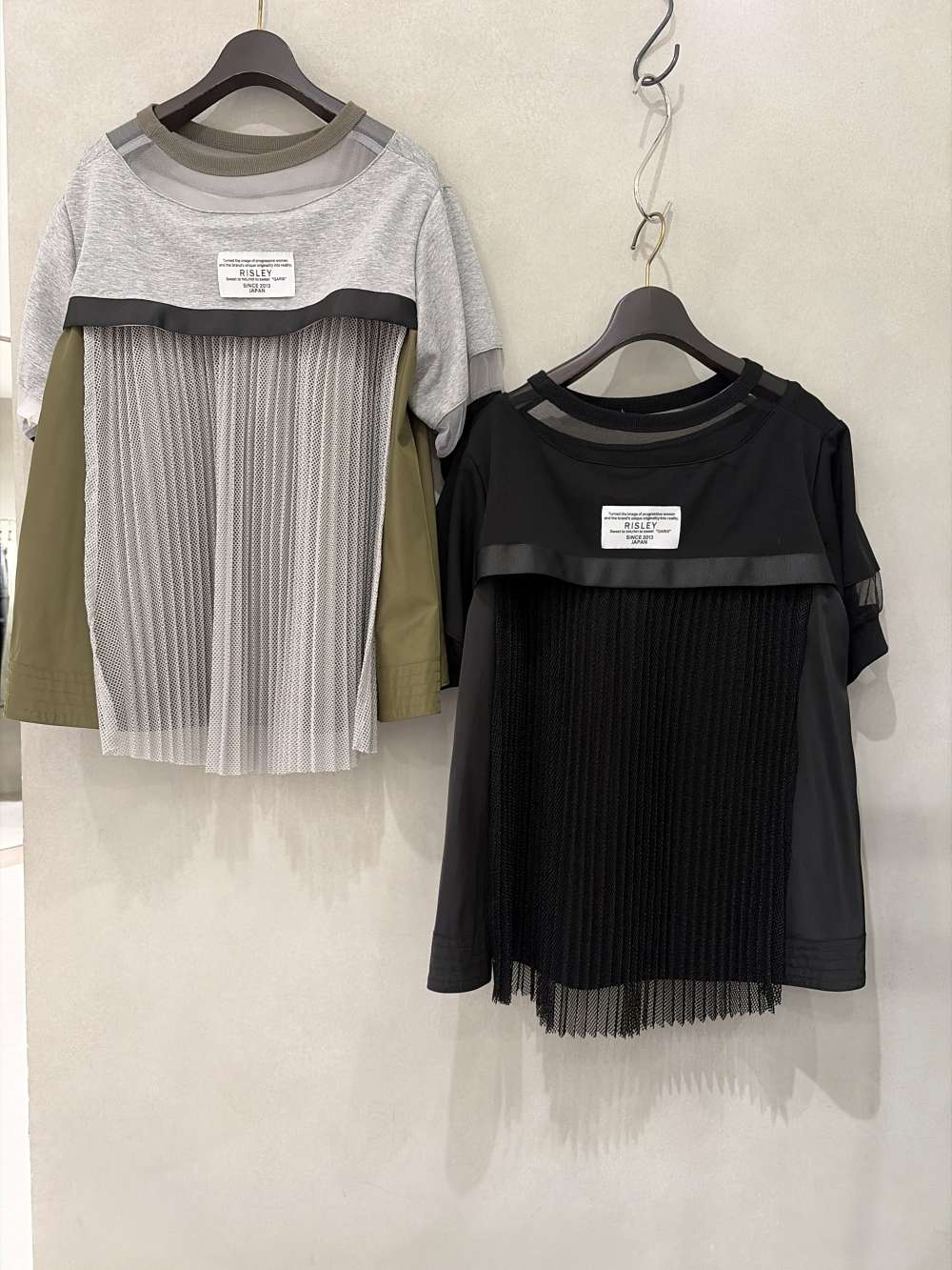 袖や裾のシアー素材が軽やかな抜け感をプラスし、程よく女性らしい雰囲気を演出。