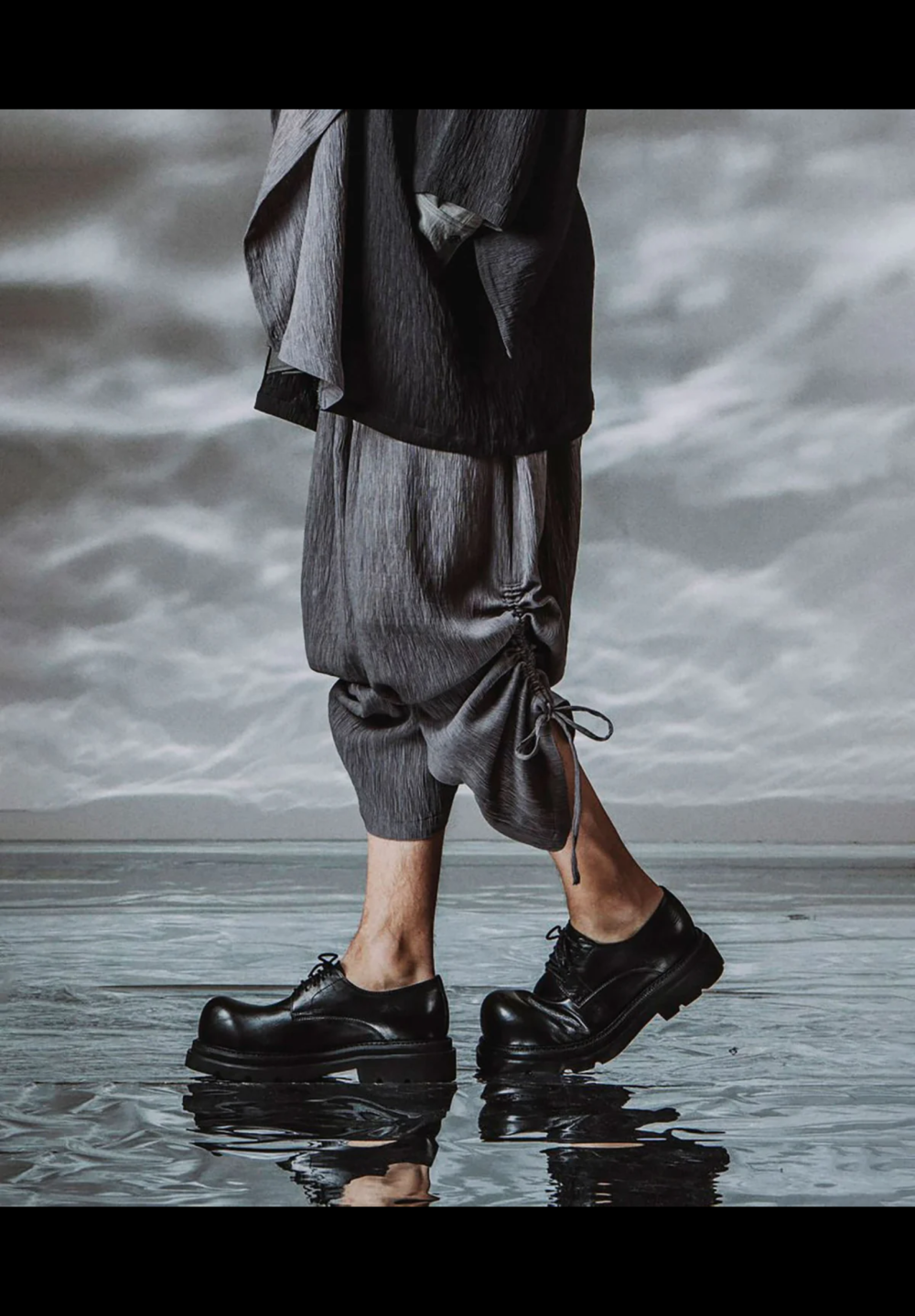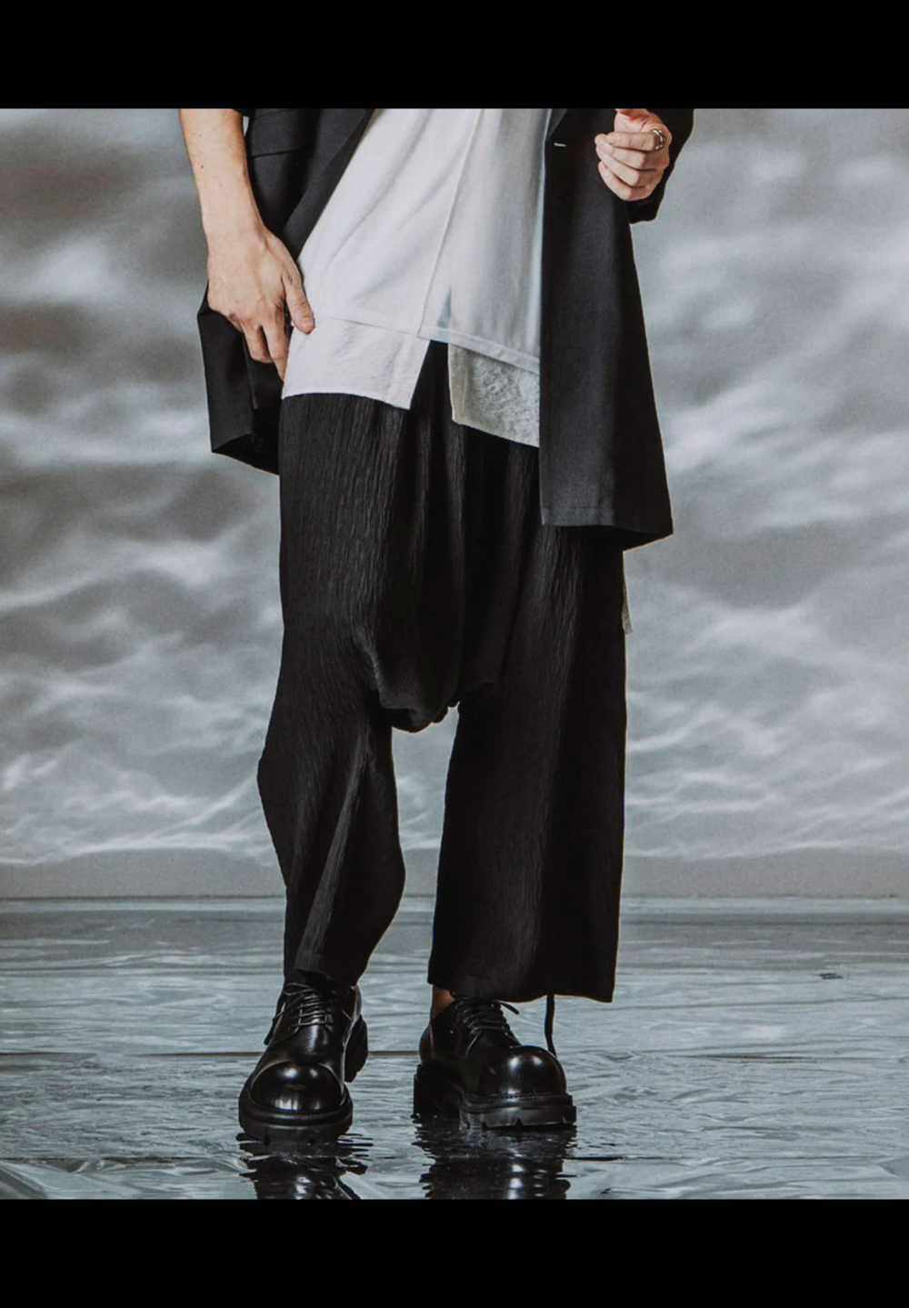生地の分量が多くヒップラインから太ももの極端なワイドシルエットから