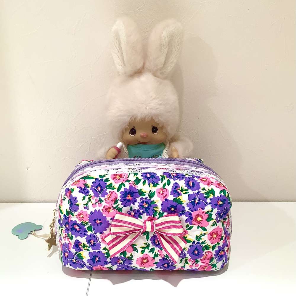 レースのふちどりがかわいい🩷🫧🪽 リボン付きキルティングポーチのご紹介です😊🎀 フェフェの人気アイテム🪄キルティングポーチに新作が登場いたしました☺...