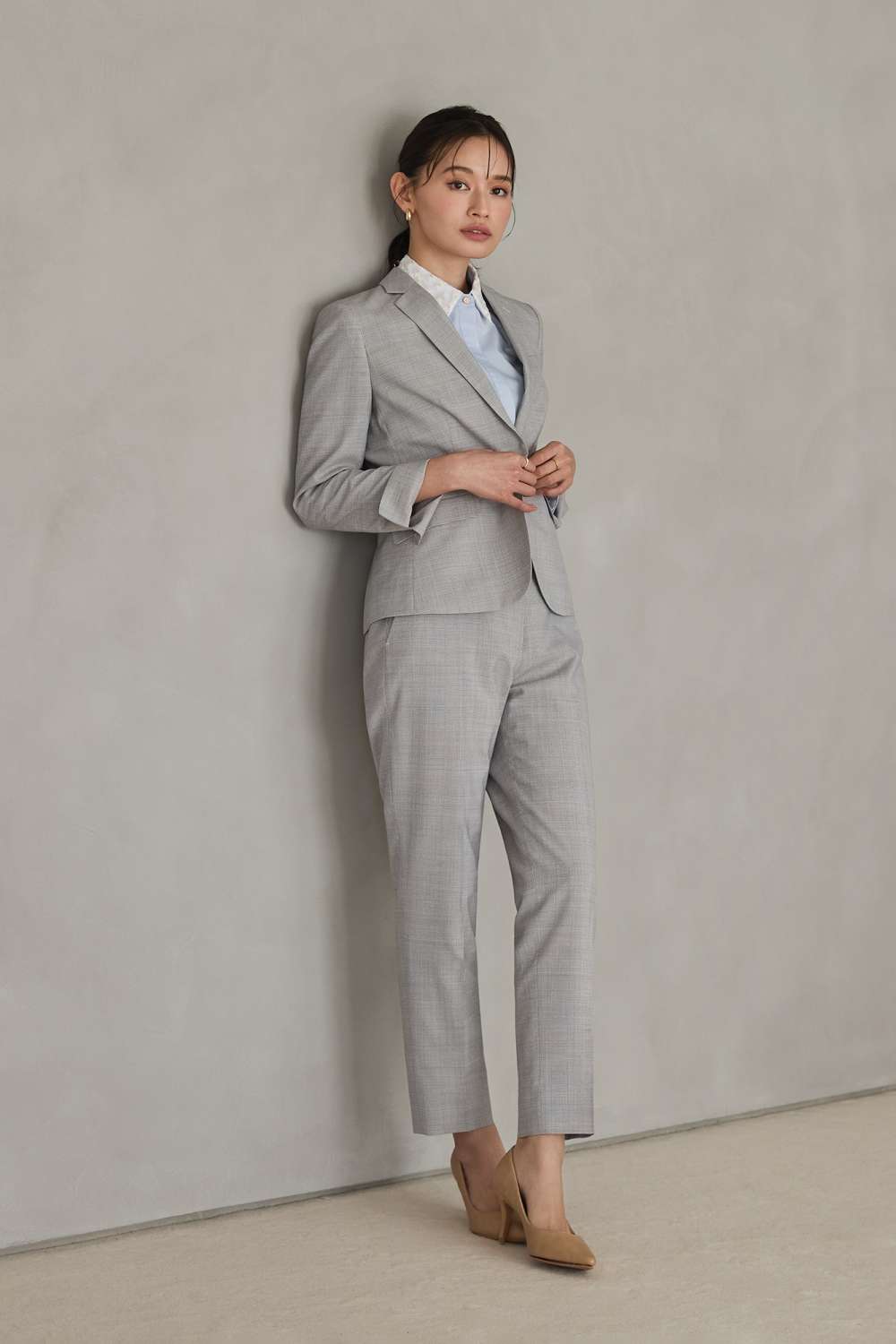 洗えるストレッチセットアップ【ライトグレーチェック】
