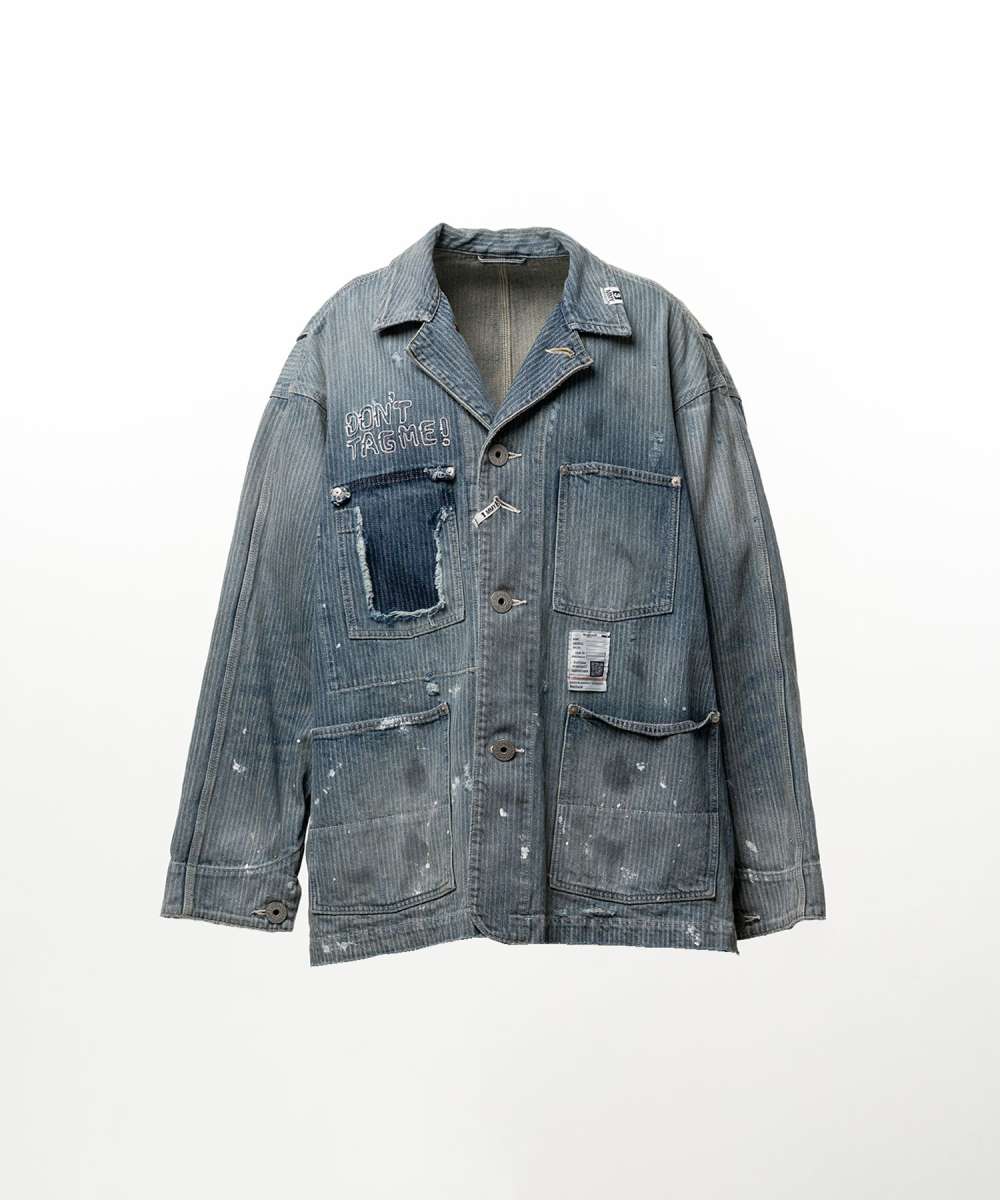 ヴィンテージ加工を施したデニム生地のチョアジャケット。 胸ポケットが経年で破れ落ちたような、エイジドデザイン。 フロント、胸ポケット。 ボタンアップ。...