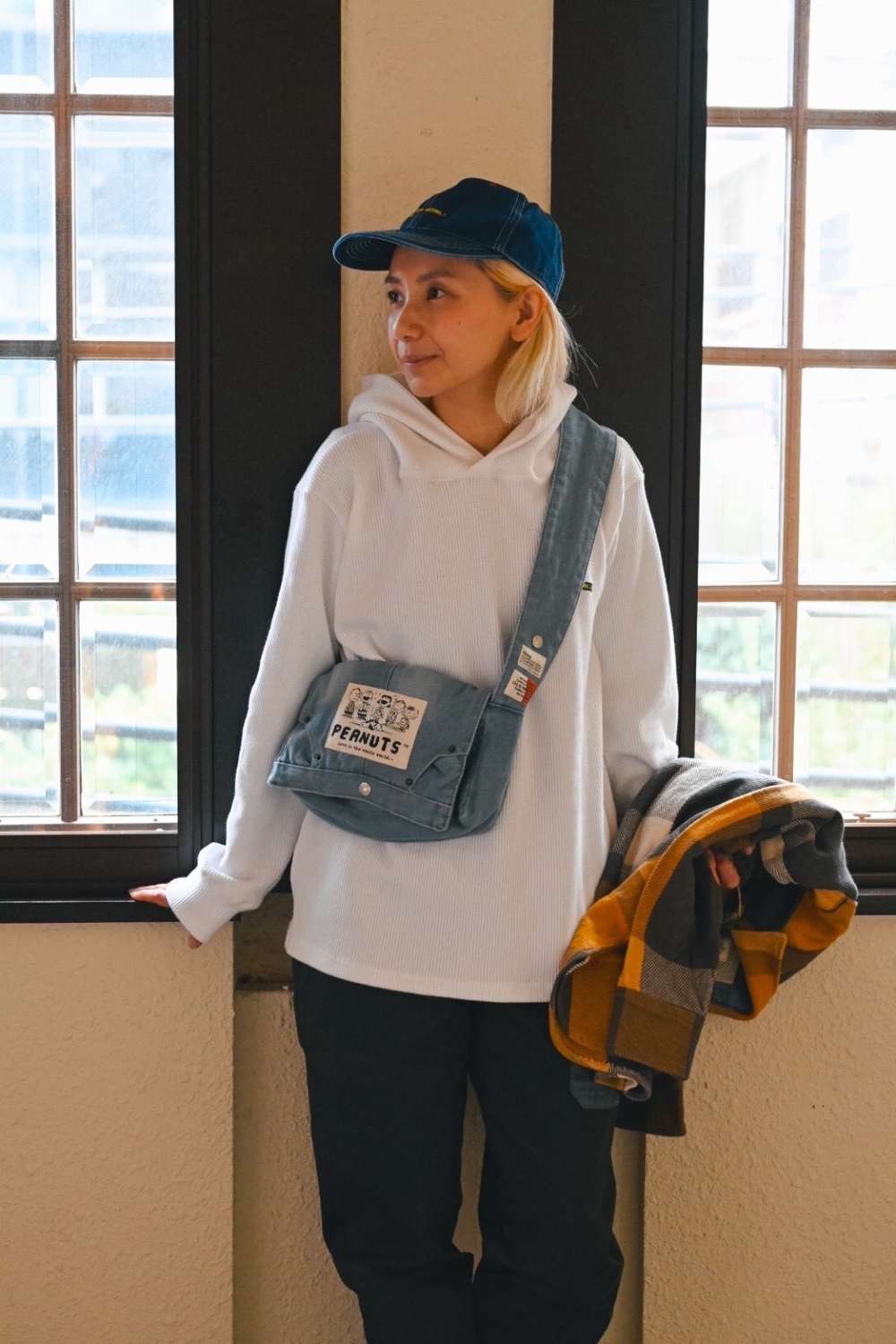 2月に再入荷したSNOOPYデニムバックシリーズ☆その中で人気の2wayポーチ★ ショルダーベルトはスナップボタンで調節が可能、ウエストポーチにもなる...