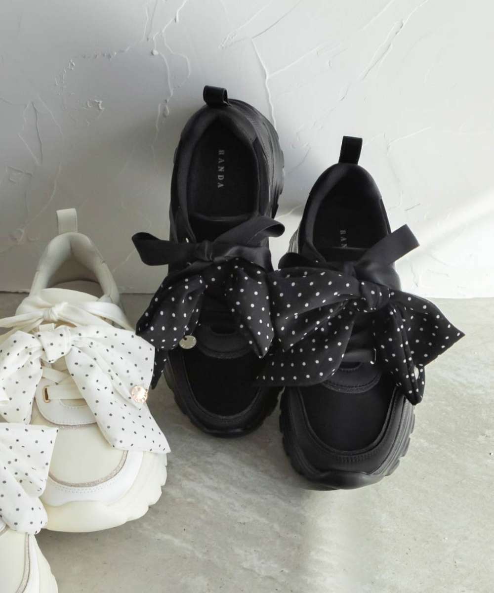 お問い合わせ番号:PH37119 J スカーフ風リボンがトレンドライクな2WAYスニーカー。 カジュアルになりがちなスニーカーをフェミニンに落とし込...