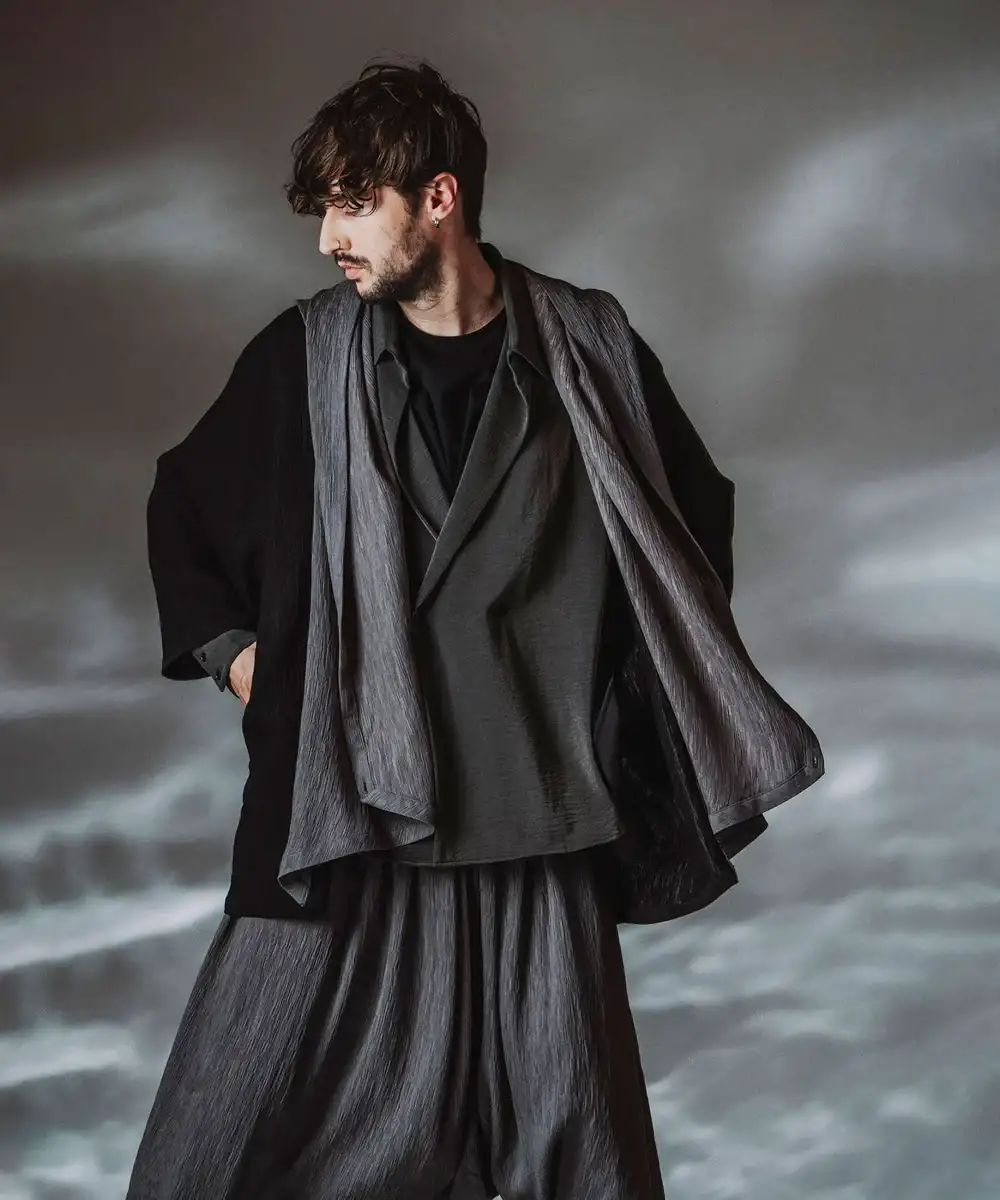 ◼︎KIMONOフードガウン PRODUCT ID:458006-467S ¥18,700税込 和と洋のテイストをミックスしたモードな1枚 着物特有...