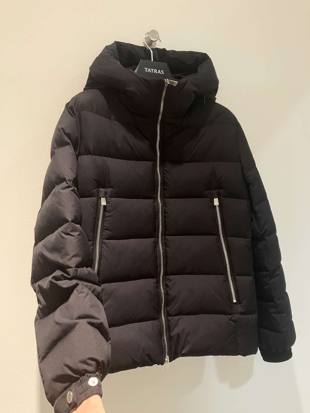 今週のおすすめ!!! ニットジャガードでTATRASロゴを表現した、フードのデザインが目を引くダウンジャケット。TATRASロゴパーツ部分にコンシール...
