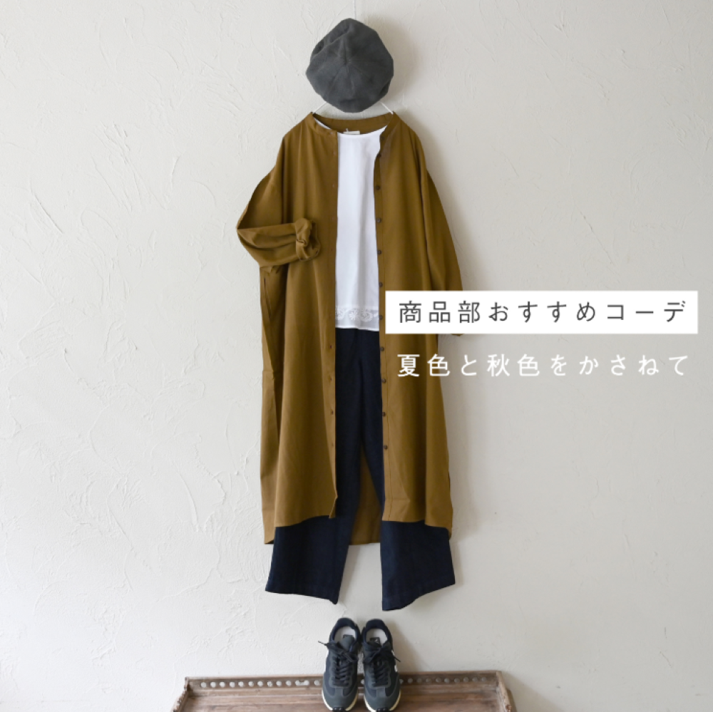 シサムコウボウの商品部オススメコーデ♪ 白とブラウン、それぞれの季節の色を潔く重ねたスタイル。 シャツワンピースの縦長ラインが美しく、メリハリが際立...