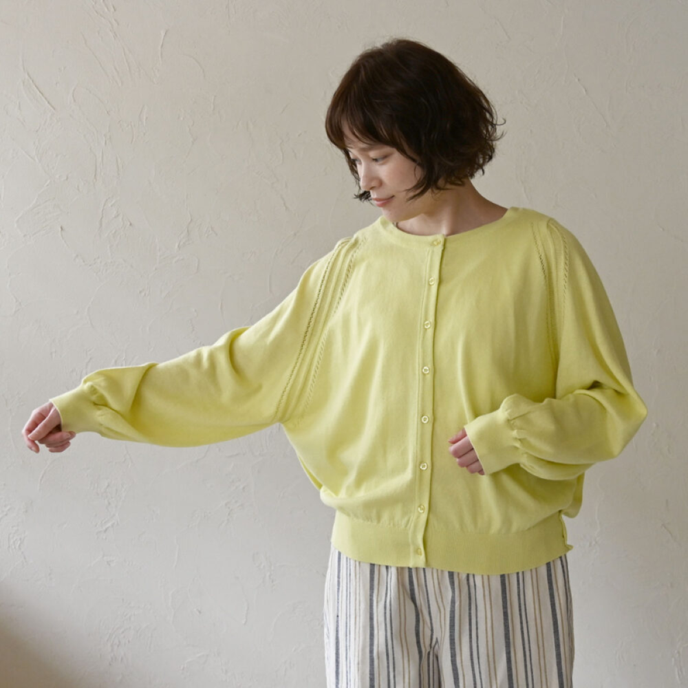 前後2通りの着方ができるカーディガンが登場! 肌寒い春の始まりから初夏にかけて長くご愛用いただけます。 アームホールから手首にかけて、ゆとりのあるシル...