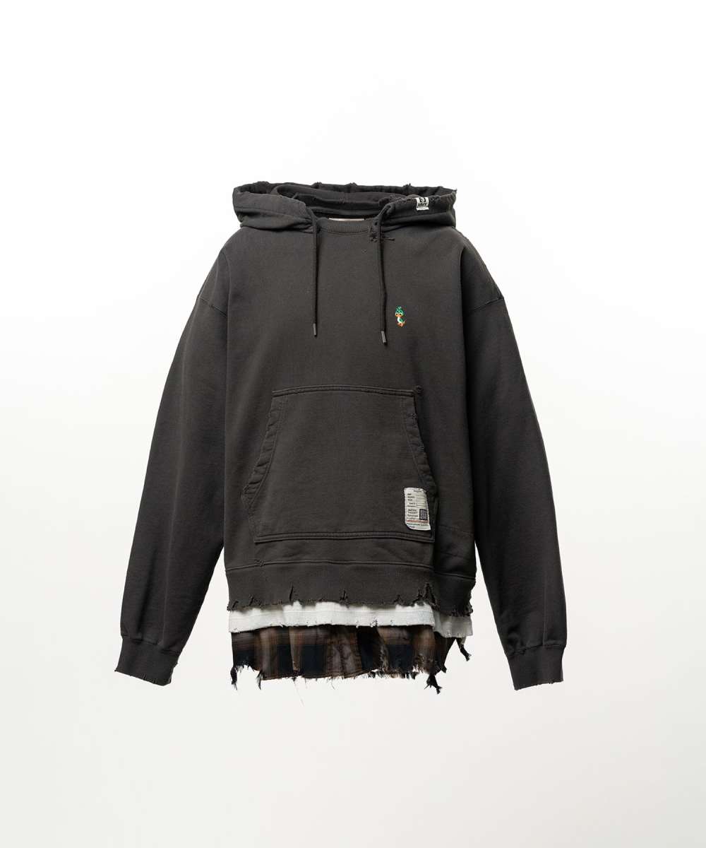 3枚のトップスを重ね着したような構築的デザインのフーディー。 左胸にレオンの刺繍をデザイン。 フード後付け。 フロントポケット。 ...