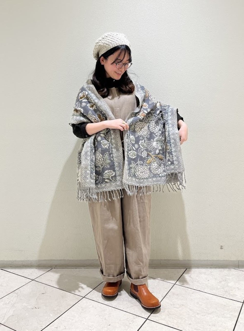 コーデの主役になる1点ものウールショール 手刺繍が施され、華やかさがプラスされています。 デザインが綺麗なので、首元に巻くだけなく、 羽織るのがおスス...