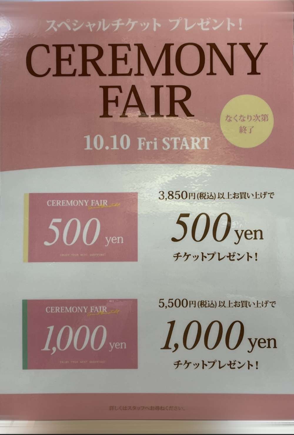 10/10(金)~セレモニーフェアを開催しております☺️🫧 3850円以上お買い上げのお客様に、500円チケットを 5500円以上お買い上げのお客様に...